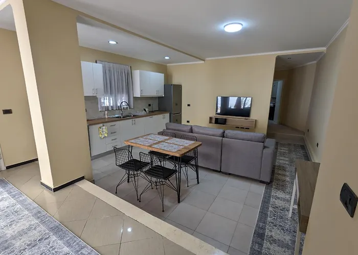 Bereiten Sie eine köstliche hausgemachte Mahlzeit zu, indem Sie eine voll ausgestattete Küche der Villa 9 - 1B nutzen. Die nächstgelegene Bushaltestelle Fiologjiku ist in 200 Meter Entfernung zur Unterkunft. Die Unterkunft bietet seinen Gästen eine Terrasse.